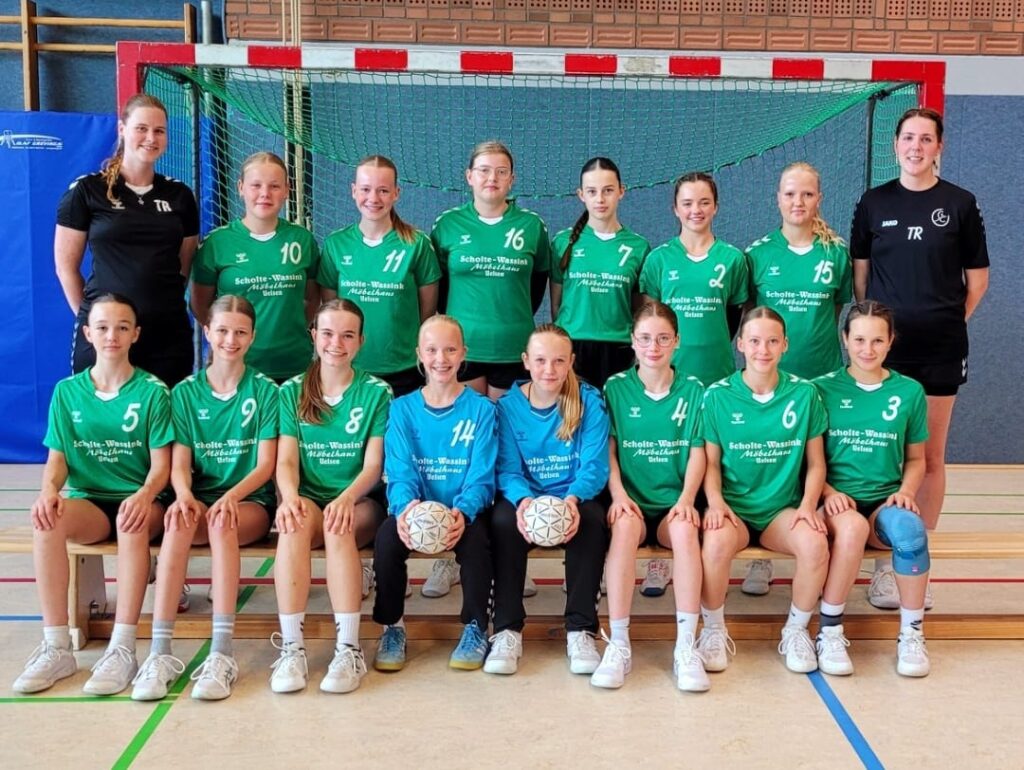 Hinten von links: Kristin Delke, Lea Plasger, Mayra Grobbe, Finja Schroven, Johanna Jeurink, Mia Cosmann, Anna Zwafink, Nina Randers-Geerties